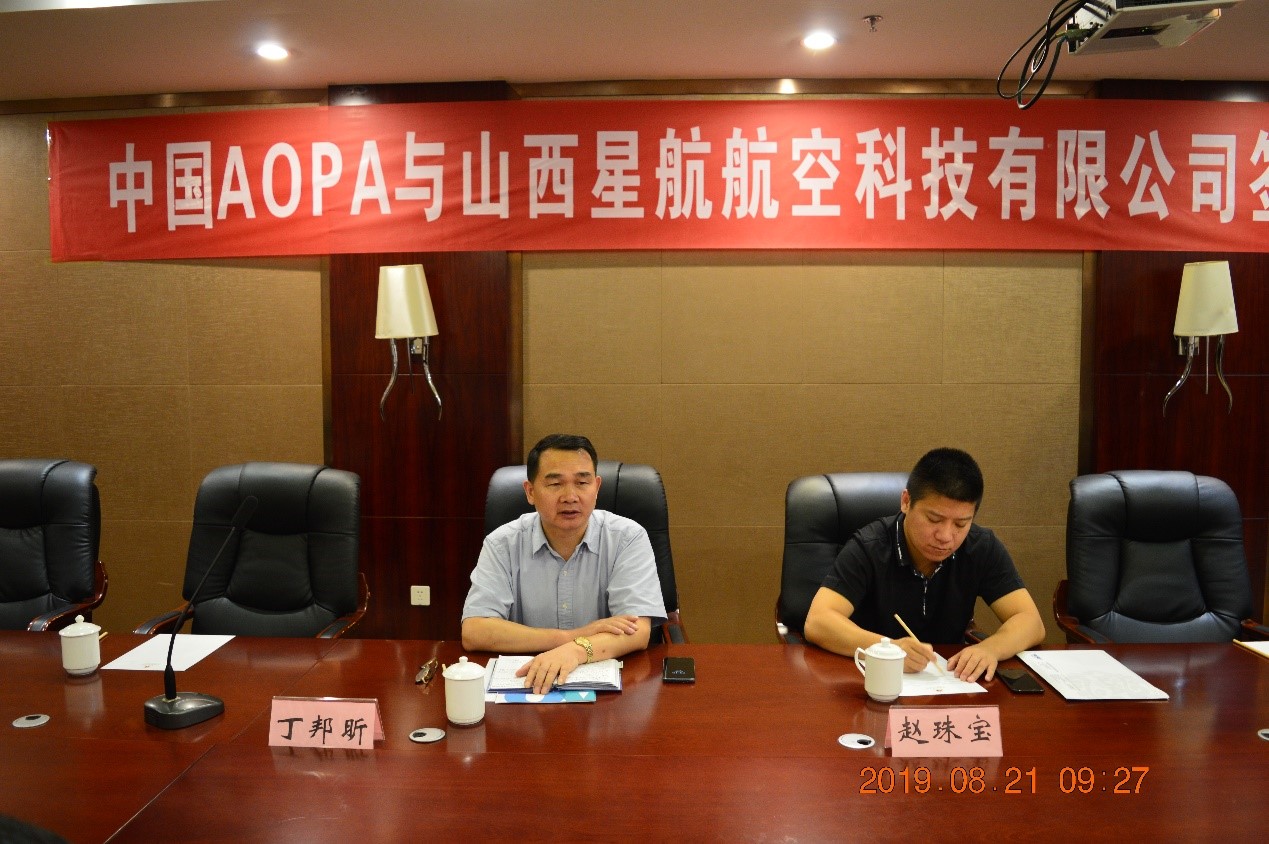 2019年8月21日,山西星航航空科技有限公司與中國航空器擁有者及駕駛員協(xié)會(huì)簽約儀式在星雅酒店五層會(huì)議室隆重舉行。參加此次簽約儀式的有中國航空器擁有者及駕駛員協(xié)會(huì)副秘書長丁邦昕先生、教育事業(yè)部市場總監(jiān)趙珠寶先生、中維控股集團(tuán)總裁郭雅磊、山西星航航空科技有限公司總經(jīng)理單永平、副總經(jīng)理鄭全勝。