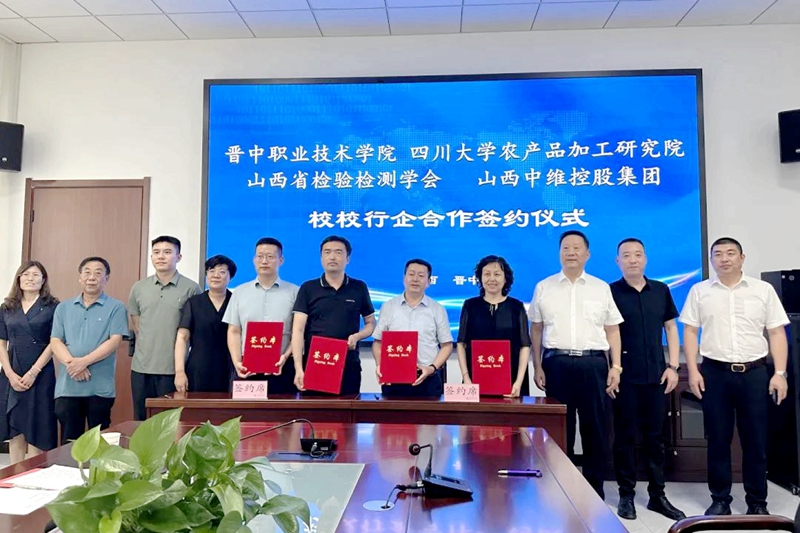 2023年8月18日,晉中職業(yè)技術(shù)學院、四川大學農(nóng)產(chǎn)品加工研究院、山西省檢驗檢測學會、中維控股集團“校校行企”合作洽談會議暨共建“食品產(chǎn)業(yè)學院”合作簽約儀式在晉中職業(yè)技術(shù)學院行政樓舉行。晉中職業(yè)技術(shù)學院院長雒衛(wèi)廷、四川大學農(nóng)產(chǎn)品加工研究院常務(wù)副院長趙志峰、山西省檢驗檢測學會副會長張紅、中維控股集團董事長郭秀忠等領(lǐng)導出席,與會的還有各單位相關(guān)負責同志。